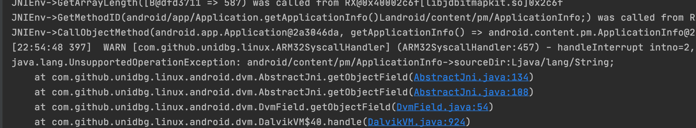 不过当遇到下图问题的时候就有点麻烦了,这个环境我也不知道怎么补,不过前面说到的大佬文章里有说过解决方案,就是去修改 so 文件的汇编代码