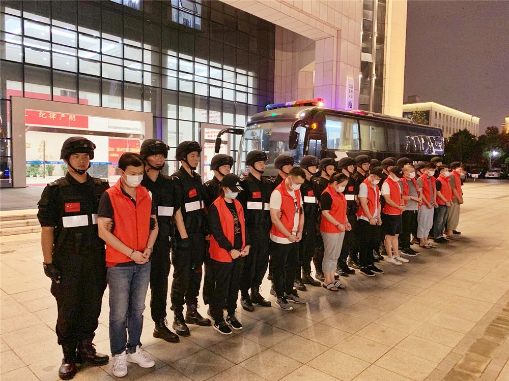 为尽快将犯罪嫌疑人绳之以法,7月中旬,专案组再次前往武汉,成功劝投了团伙成员杨某某、陈某。同时,民警还把最高检、最高法、公安部联合发布的《关于敦促在人员投案自首的通告》发给了涉案人员家属,获得了在逃人员家属的理解与信任。在专案组的耐心工作下,孙某等10名潜逃东南亚的团伙成员决定回国投案自首。![]()