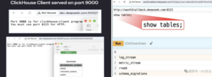 本次事件中,Wiz安全研究团队通过技术手段探测了约30个DeepSeek面向互联网的子域名的80和443端口。这些暴露服务大多是托管聊天机器人界面、状态页面和 API 文档等资源,也都没有相关安全风险。为了进一步探寻DeepSeek的暴露风险,Wiz安全研究团队将探测范围扩大到了除80、443端口之外的非常规端口,如8123、9000端口等。最终,他们发现了非常规端口的多个子域名下均有暴露服,如: