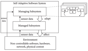 自主智能,或称为自主系统模式通过自动化流程生成智能,使得计算机、机器人和系统能够在最小化甚至无需人类干预的情况下独立做决策和行动。这种智能系统在全球范围内的军事领域尤其有巨大的应用潜力,因为它们能够独立完成任务、实现目标或与周遭环境互动,并能够预测事件、制定计划并感知周围环境。这种高度的自主性和智能使得自主系统成为执行复杂军事行动、实现战略目标和提升作战效能的理想选择。自主系统的发展旨在减少或完全消除对人力的依赖,它们必须能够可靠、一致地执行任务,并且具有极高的性能标准,以确保在没有人类直接参与的情况下也能达成预定目标和维持操作效率。如图2.6展示了自主和自适应系统中的反馈回路及其工作原理,其中包括监控、分析、计划和执行(MAPE-K)过程,共享知识并在子系统中进行控制和管理。这个模型简化了数据收集和处理流程:通过传感器收集数据,然后依次进行监控、分析、制定计划和执行操作,分析和计划阶段基于预设的规则和政策。这种结构化的控制模型为自主系统提供了清晰的指导原则,确保系统能够自主地、高效地响应环境变化和任务要求,同时也展示了自主系统如何在不同的现实世界情境中灵活运作和适应。这种高级的自适应能力和自主执行任务的能力,让自主智能系统在军事策略、战场自动化和安全防御等领域有着巨大的潜力。