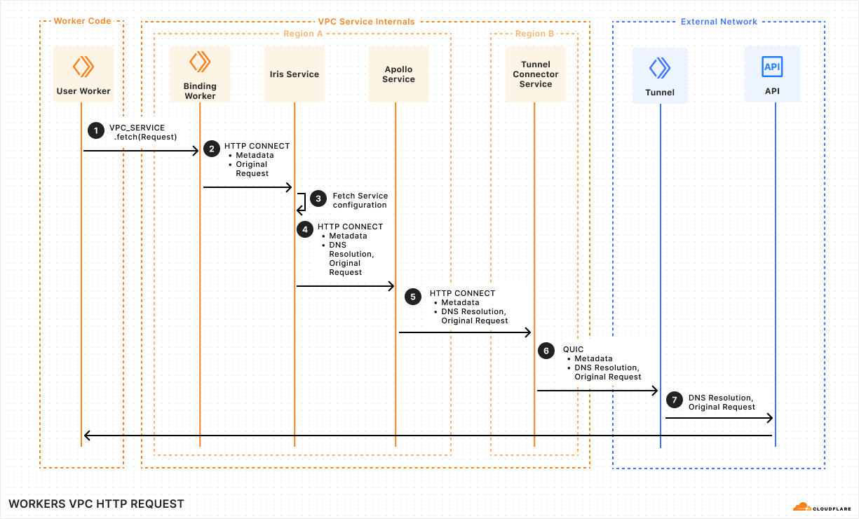 How Workers VPC Services connects to your regional private networks from anywhere in the world