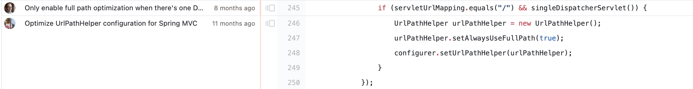当Spring Boot版本≤2.3.0时,默认alwaysUseFullPath为false,导致路径标准化处理%2e和跨目录,可能绕过身份验证;高版本改为true以提高效率,但可能引入其他安全风险。...