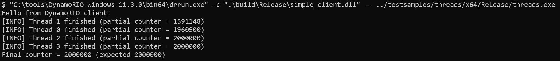 Dynamic binary instrumentation (DBI) with DynamoRio