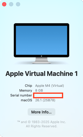 macOS 26.1.0 virtual machines do not generate valid system serial numbers