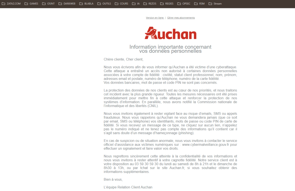 Auchan discloses data breach: data of hundreds of thousands of customers exposed