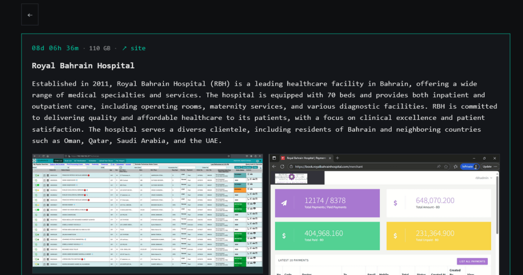 Payload Ransomware claims the hack of Royal Bahrain Hospital