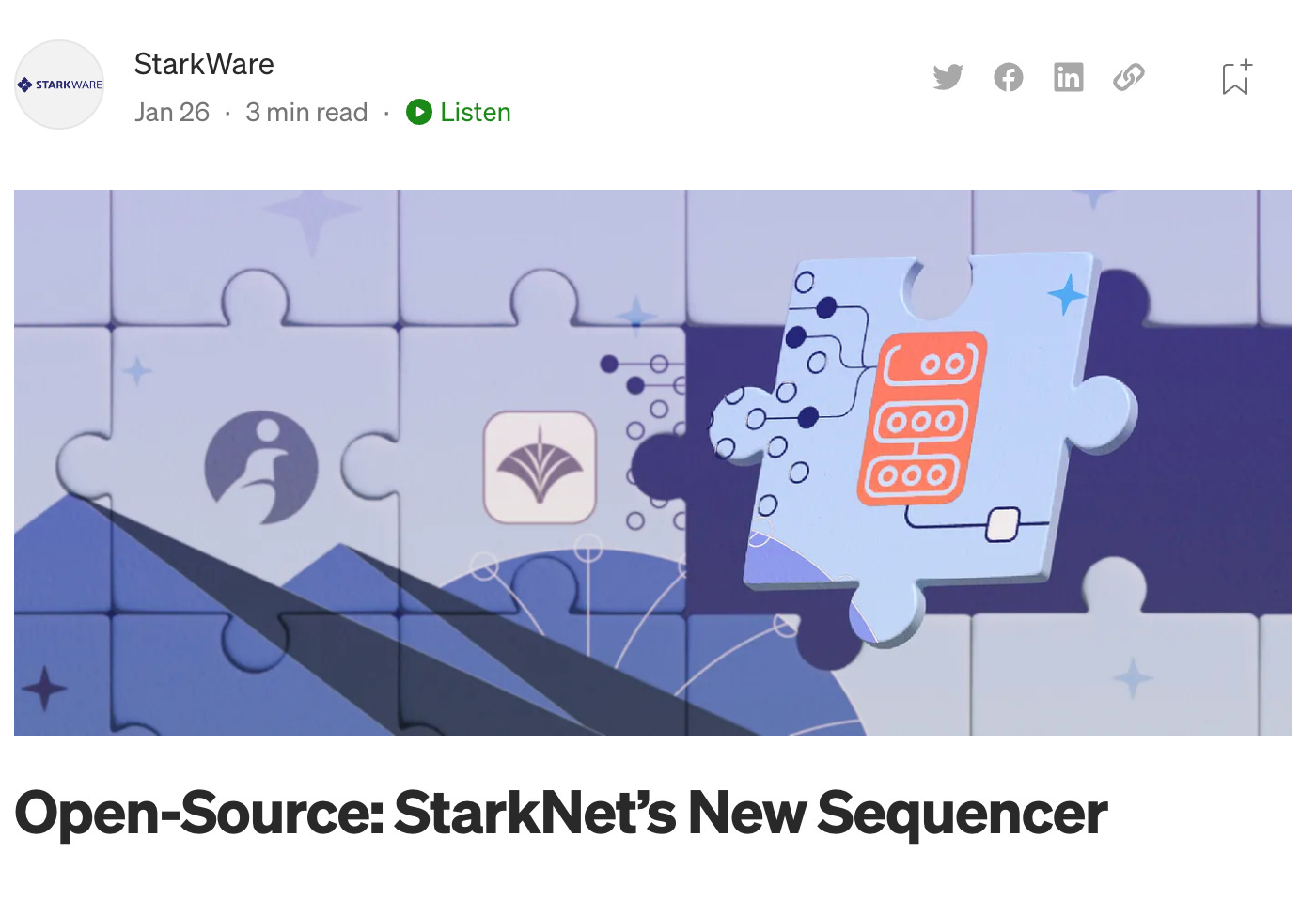 Following our last mention of StarkNet releasing an open-source Sequencer, StarkWare has made anothe...