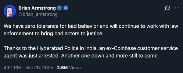 印度警方逮捕一名前Coinbase客服人员,因其涉嫌被网络犯罪团伙贿赂以获取客户敏感信息。此事件与2025年披露的数据泄露有关,涉及近7万名客户的详细信息,估计将使公司损失高达4亿美元。批评指出,外包客服或加剧安全风险。...