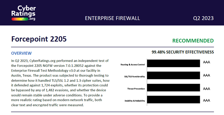 Forcepoint’s FlexEdge Secure SD-WAN Next-Gen Firewall Achieves Top Rating from CyberRatings.org