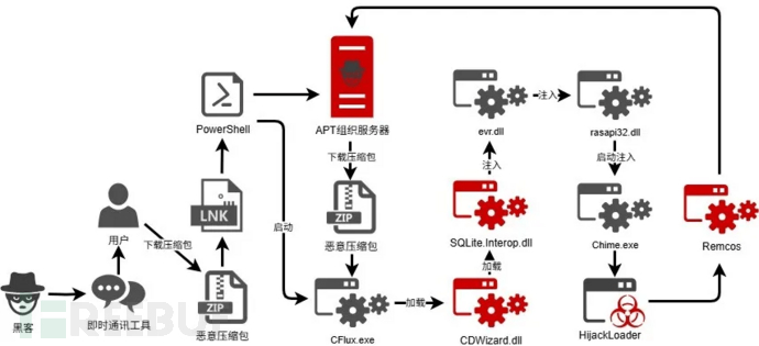 好的,我现在需要帮用户总结一篇文章的内容,控制在100字以内,并且不要用“文章内容总结”这样的开头。首先,我得仔细阅读文章,抓住主要信息。 文章主要讲的是一个与俄罗斯有关的威胁组织UAC-0184,他们通过Viber发送恶意ZIP文件攻击乌克兰军方和政府机构。攻击手法包括伪装成官方文件的恶意LNK快捷方式,启动多阶段感染流程,最终部署HijackLoader和Remcos远程访问木马。技术细节方面,他们使用了PowerShell脚本、合法程序CFlux.exe以及侧加载技术来逃避检测。 接下来,我需要将这些信息浓缩到100字以内。重点包括攻击组织、目标、攻击手段、使用的工具和技术。同时要确保语言简洁明了,不遗漏关键点。 可能的结构是:首先介绍组织和目标,然后描述攻击手段和工具,最后提到技术细节和建议。这样可以确保内容全面且符合字数要求。 最后检查一下是否有重复或不必要的信息,并进行删减,确保在100字以内。 </think> 与俄罗斯有关的威胁组织UAC-0184通过Viber投递恶意ZIP文件攻击乌克兰军方和政府机构。该组织伪装成官方文件的恶意LNK快捷方式启动多阶段感染流程,最终部署HijackLoader和Remcos远程访问木马。技术细节显示其利用合法程序CFlux.exe侧加载恶意DLL以逃避检测,并通过加密数据隐藏最终载荷。...