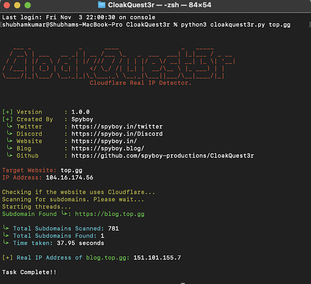 CloakQuest3r - Uncover The True IP Address Of Websites Safeguarded By Cloudflare