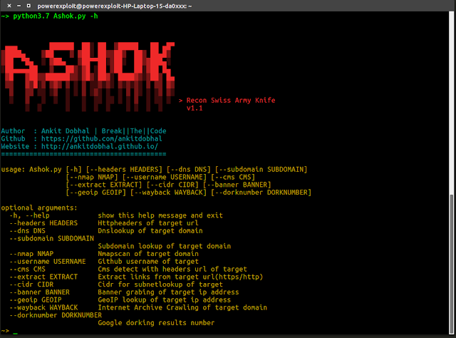 Ashok - A OSINT Recon Tool, A.K.A Swiss Army Knife