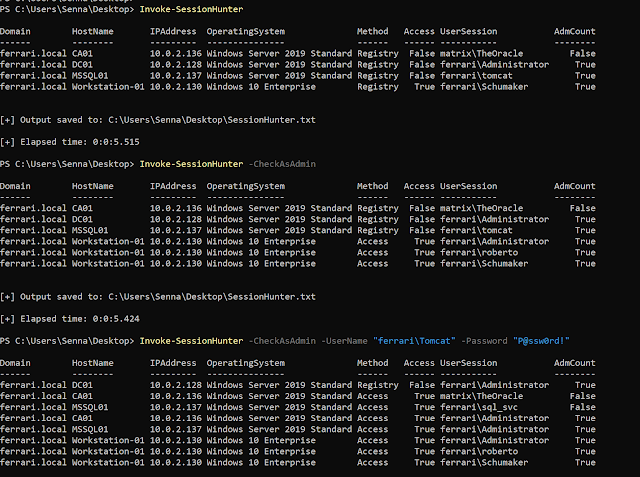 Invoke-SessionHunter - Retrieve And Display Information About Active User Sessions On Remote Computers (No Admin Privileges Required)