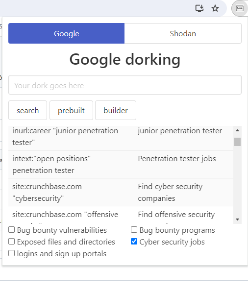 Dorkish - Chrome Extension Tool For OSINT & Recon