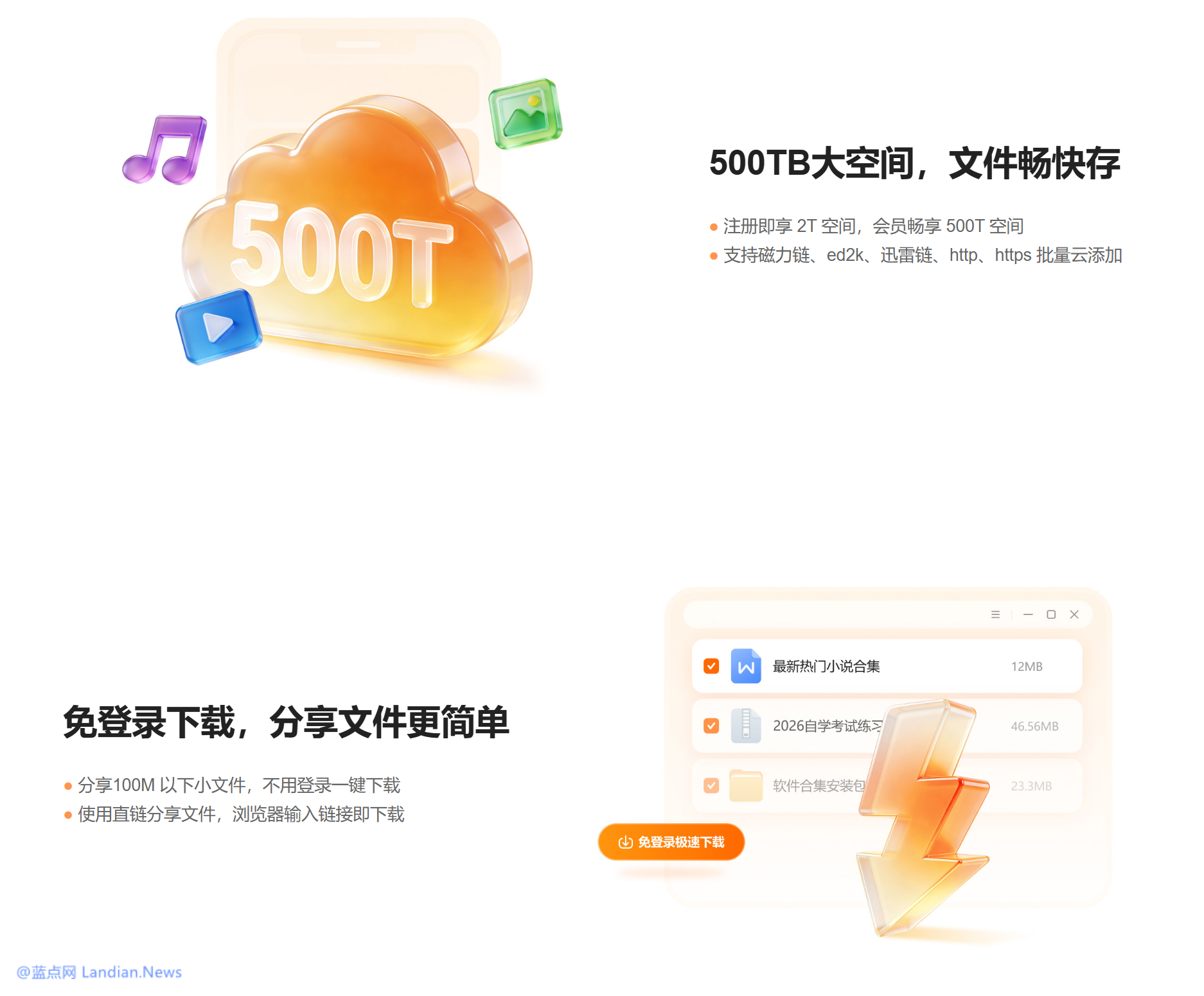 迅雷旗下公司推出「光鸭云盘」号称免登录下载和支持三方应用连接