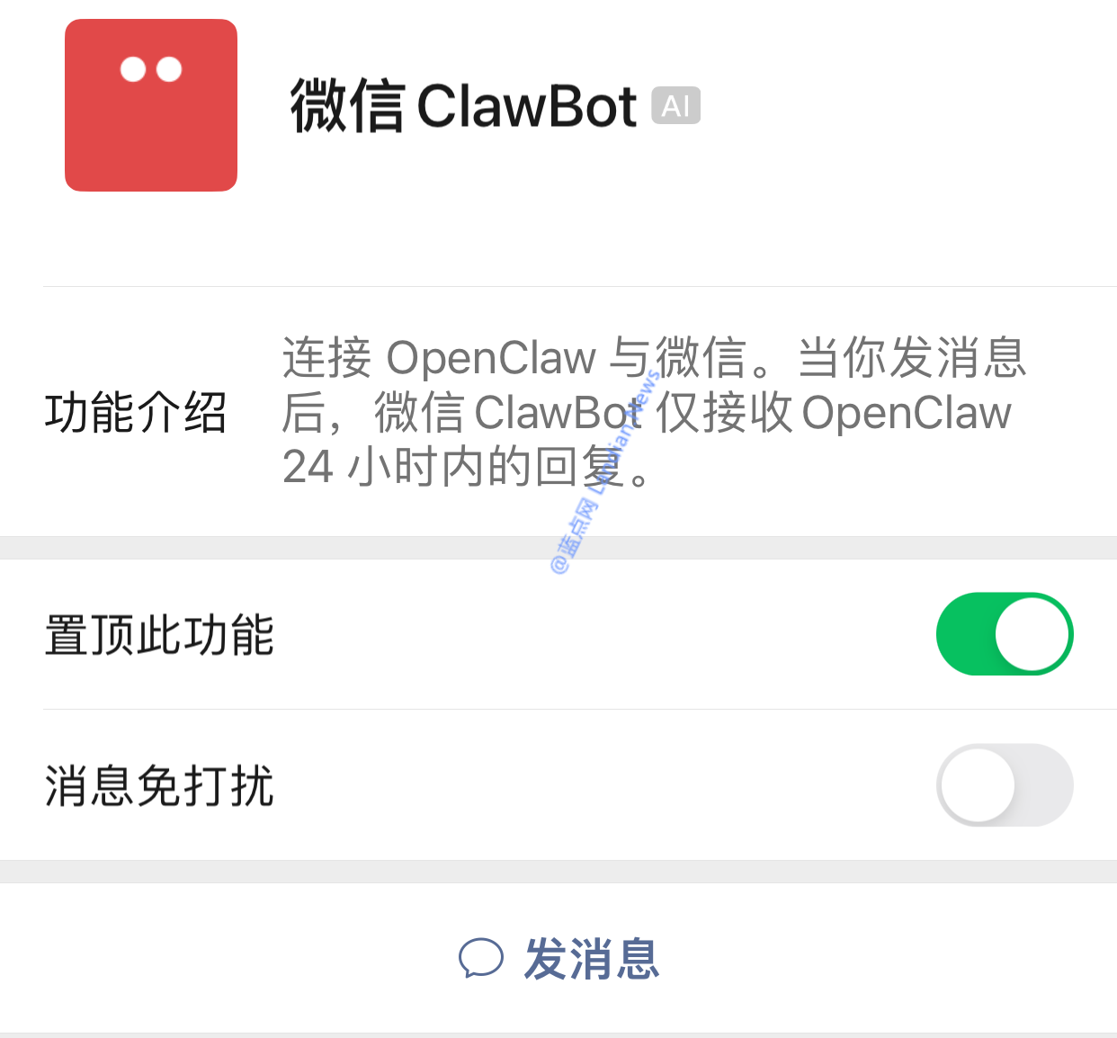 嗯,用户让我帮忙总结一下这篇文章的内容,控制在一百个字以内,而且不需要特定的开头。首先,我需要仔细阅读文章,抓住主要信息。 文章讲的是微信推出了ClawBot插件,支持连接OpenClaw AI机器人。这个插件可以让用户在微信里使用AI机器人,而不用冒险用非官方插件。不过目前功能有限,比如不支持快捷命令和浏览模型列表,还有24小时的消息转发限制。 接下来,我得把这些关键点浓缩到100字以内。要包括微信推出插件、支持OpenClaw AI、功能限制和注意事项。可能还需要提到安装步骤和版本要求。 最后,确保语言简洁明了,不使用复杂的术语,让读者一目了然。 </think> 微信推出ClawBot插件,支持连接OpenClaw AI机器人进行消息收发。目前功能有限,不支持快捷命令和模型列表浏览,并设有24小时消息转发限制。用户需定期发送消息以保持连接活跃。...