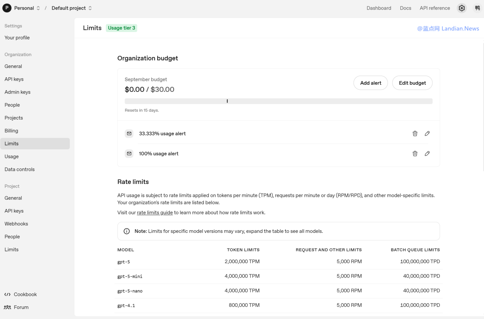 OpenAI调整GPT-5系列模型API速率 层级1~4速率均翻倍 每分钟可以并发更多数据