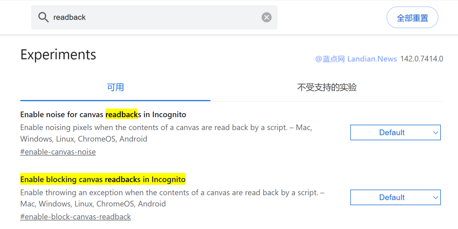 谷歌浏览器测试反画布回读功能 用于在隐身模式下阻止网站使用隐藏图像追踪