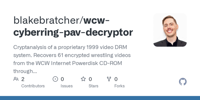 Broke a 1999 video DRM system through static binary analysis — recovered 51 minutes of lost WCW wrestling content locked for 25 years