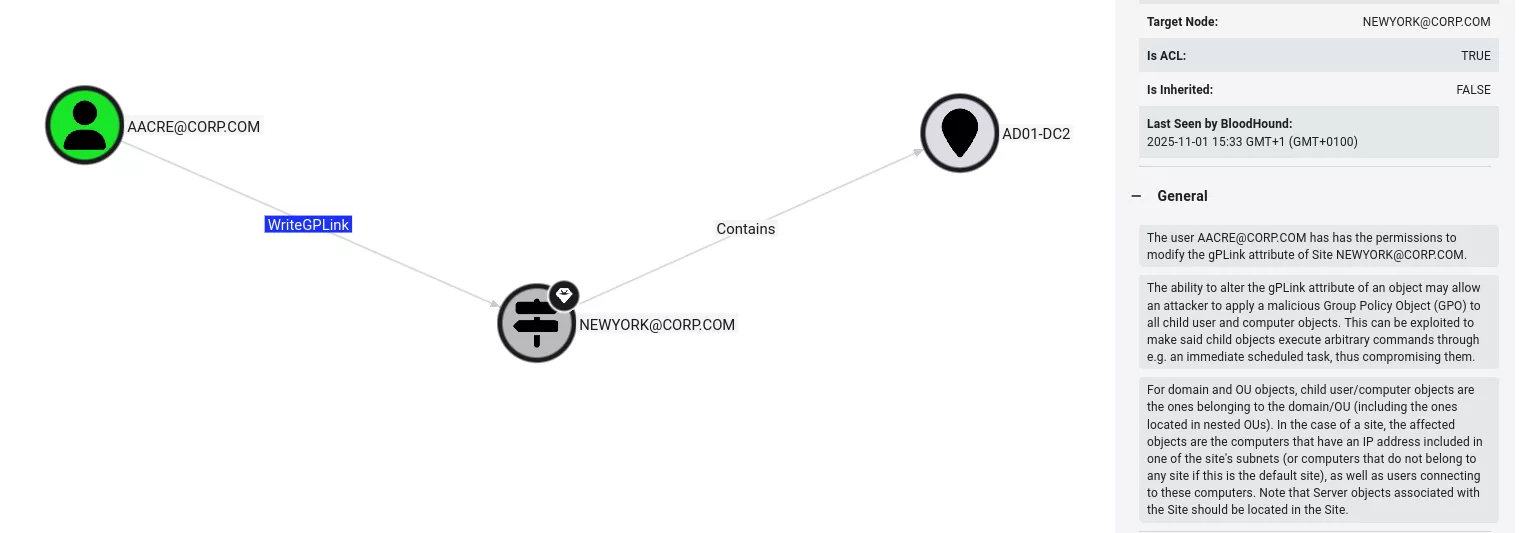 Active Directory站点用于优化网络效率和带宽使用,但其关联的GPO(组策略对象)可能成为高危攻击向量。通过控制GPO或修改gPLink属性,攻击者可注入恶意配置,影响所有关联对象(包括域控制器),甚至跨域妥协整个森林。BloodHound已集成相关数据以识别潜在风险。...