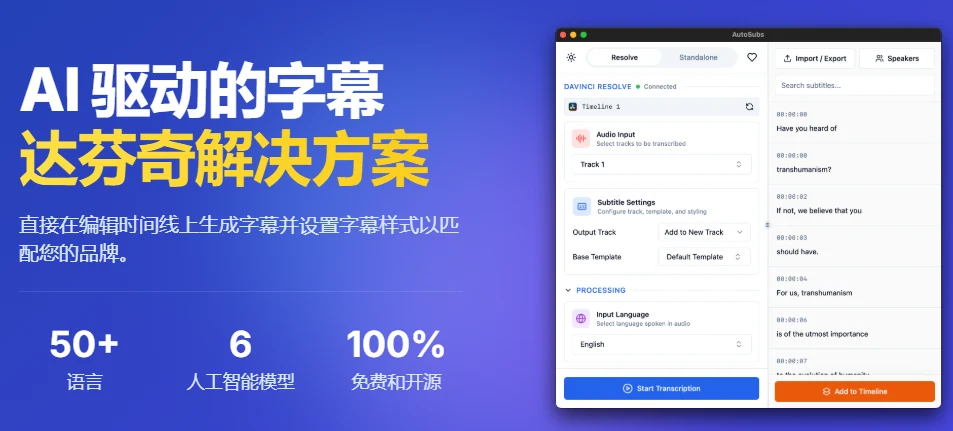 Auto-Subs:达芬奇工作流绝配,用本地显卡跑 Whisper 字幕