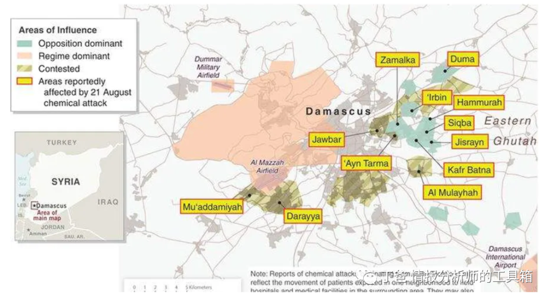 叙利亚政权已着手努力清除大马士革郊区的反对派部队,利用该地区作为基地,对首都的政权目标发动攻击。尽管大马士革使用了几乎所有的常规武器系统,但该政权仍未能清除数十个大马士革社区的反对派成员,包括8月21日遭到袭击的社区。我们估计,该政权对无法确保大马士革大部分地区的安全感到沮丧,这可能有助于其8月21日使用化学武器的决定。