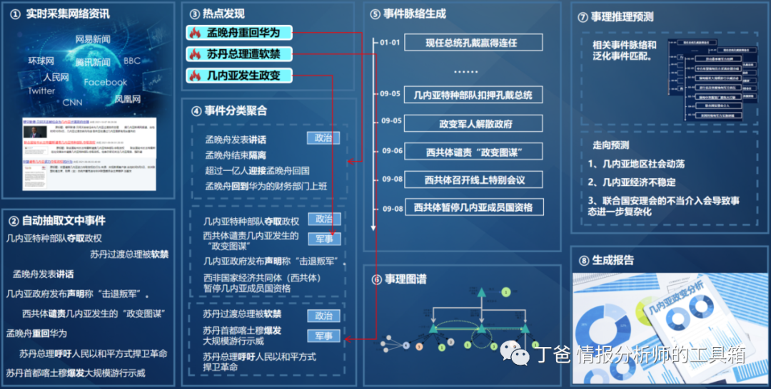 基于业内首创的事理图谱,从历史事件脉络中挖掘事件因果关系,智能预测事件走向。