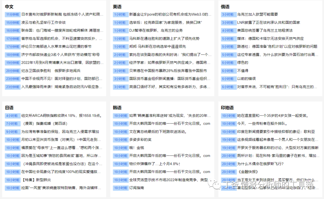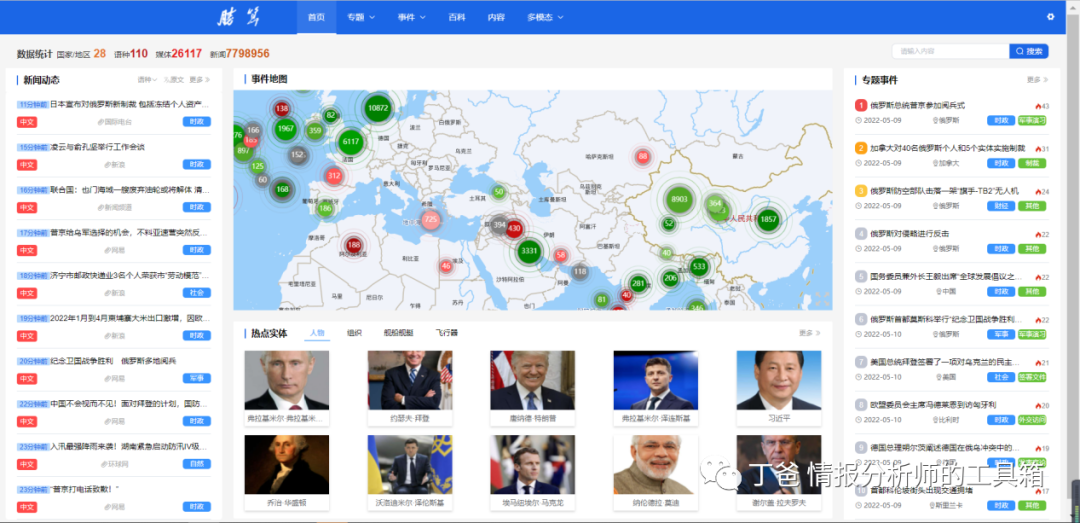 实时采集100多种语言、20000多家新闻媒体和主流社交媒体数据。