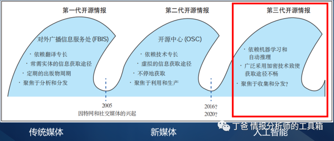 大数据时代信息爆炸式增长,开源情报的作用凸显得更为重要。而人工智能则为开源情报带来了颠覆性的技术手段,极大地提升了开源情报的自动化处理范围和分析深度。美国兰德公司将人工智能驱动的开源情报定义为第三代开源情报。