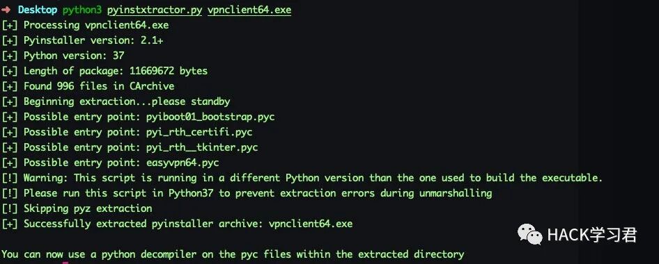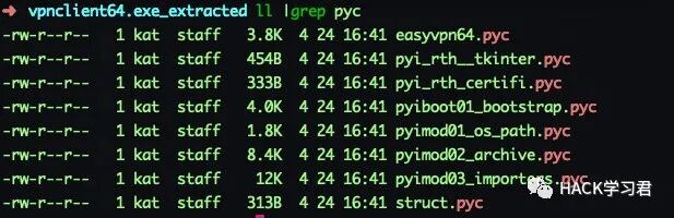 python3 pyinstxtractor.py vpnclient64.exe生成一个以 exe文件名+_extracted 的文件夹,这个就是解包后的数据