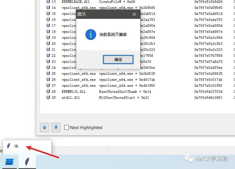 哦豁,竟然提示不兼容当前系统;看到弹窗有Pyhton代码编写的特征。感觉到前面的打点由过于丝滑,不自然的警觉了起来。