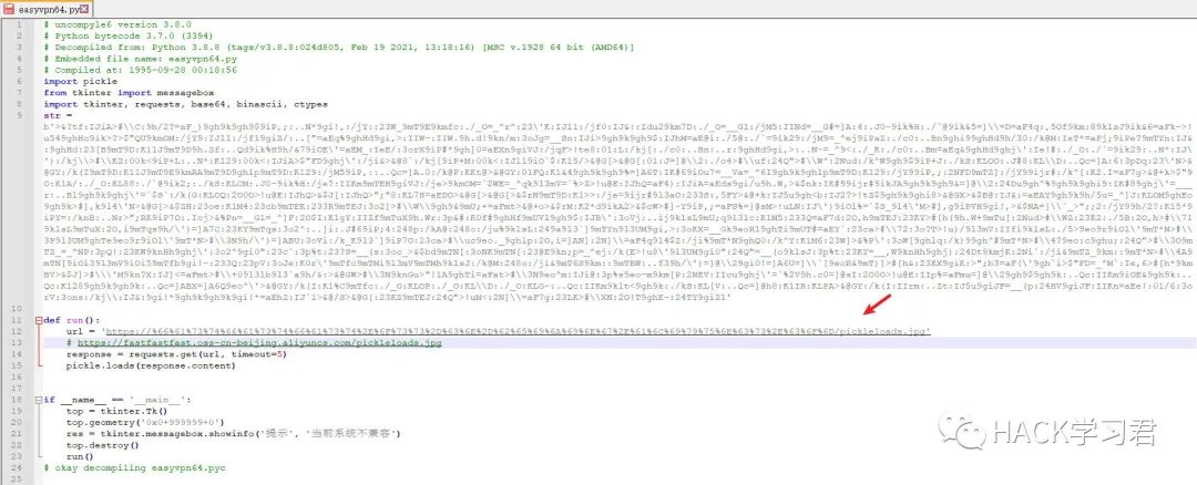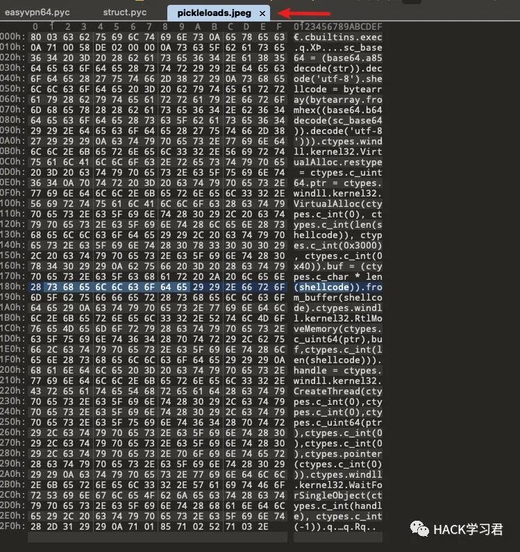 得到py文件,easyvpn64.py为后门主程序,其中执行shellcode代码隐藏至图片中。