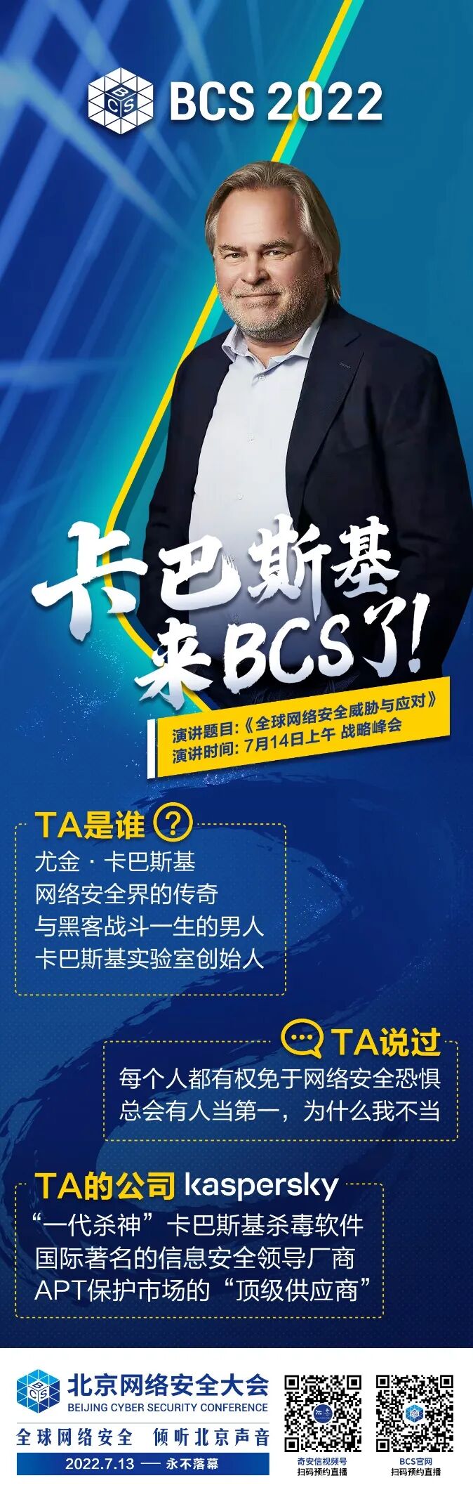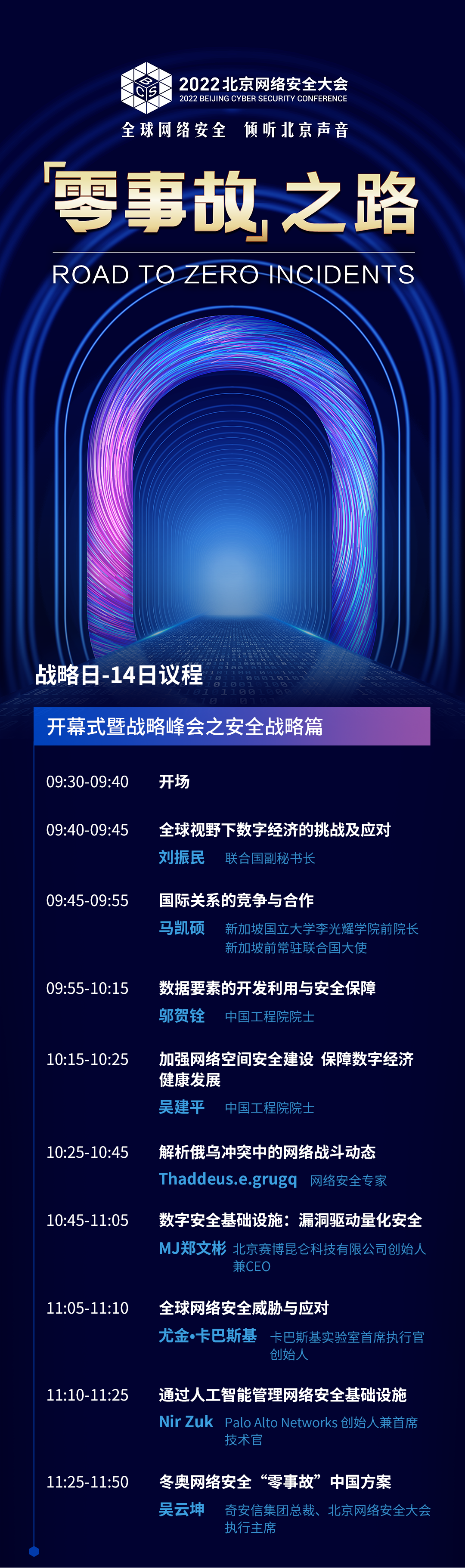 明日,BCS2022安全战略峰会精彩继续,来自中、美、俄等国的院士、全球知名网络安全专家及联合国官员首次聚首,从全球视野出发,聚焦国家战略、安全趋势等议题。