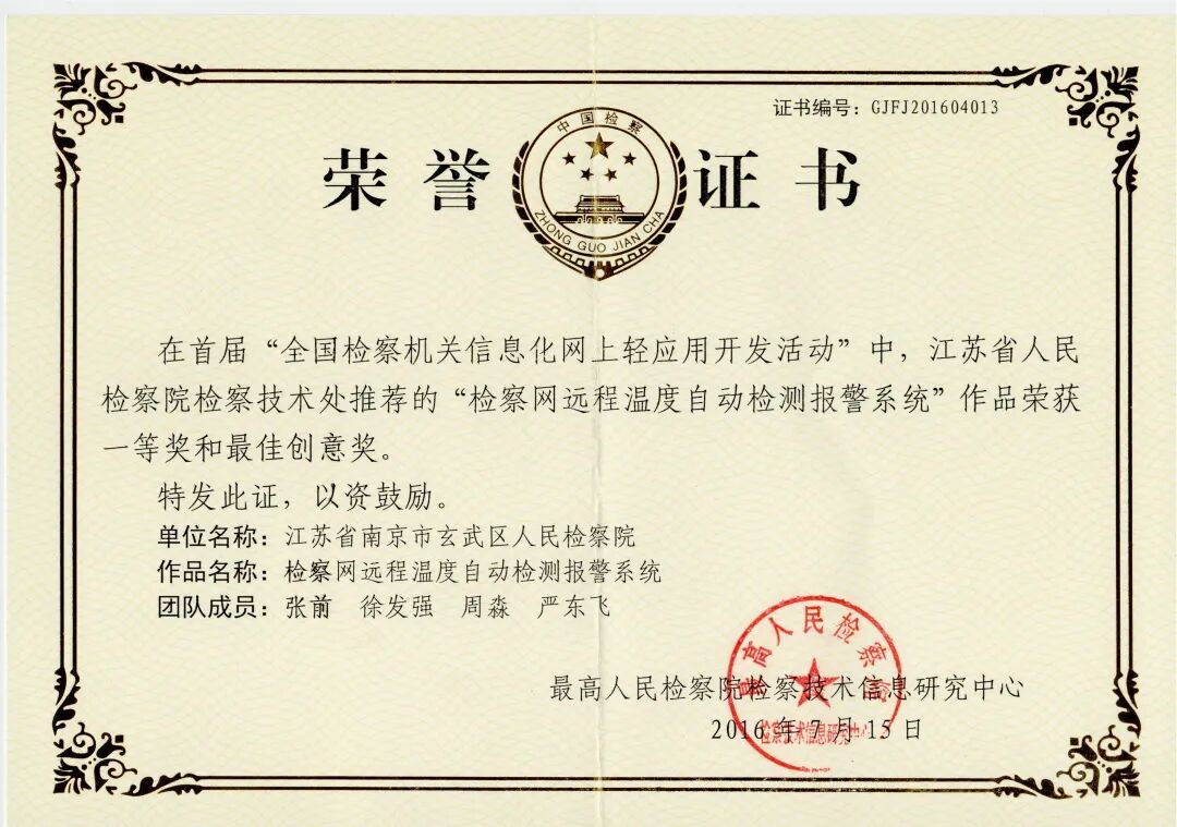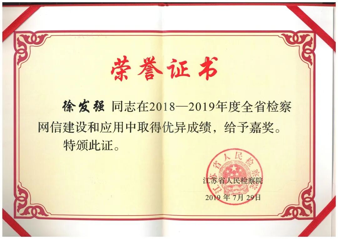 2016年,他参加最高检第一届轻应用竞赛获得了一等奖和最佳创意奖。在智慧检务上屡有建树,负责的技术部门已连续9年取得全市优秀。由于工作出色,他本人还获得省嘉奖一次、三等功一次,多次获得市先进工作者、优秀公务员荣誉称号。