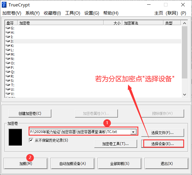 2)也可以直接打开TrueCrypt,选择对应的加密文件或是设备,点击加载;