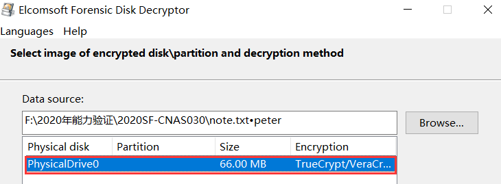 2、通过Elcomsoft Forensic Disk Decrypto解密TrueCrypt