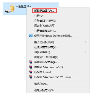 在Windows系统中,启用过BitLocker加密容器的分区,一般会在分区上有把锁,当BitLocker加密容器处于未解密状态时,锁的图标为金色且是锁定状态,当BitLocker加密容器处于解密状态时,锁的图标为灰色且是打开状态,如下图所示: