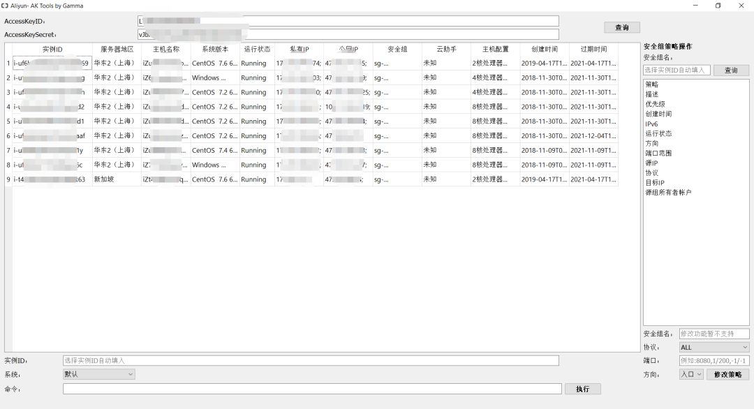 此工具查询ALIYUN_ACCESSKEY的主机,并用于远程执行命令。