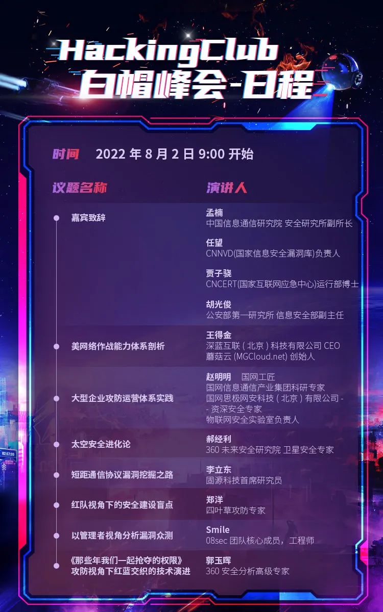 本次峰会,HackingClub技术社区为您准备了多重精彩,这里有鲜明的观点表达,燃动的技术分享,与会嘉宾共忆来时,共言当下,共商未来,敬请期待!