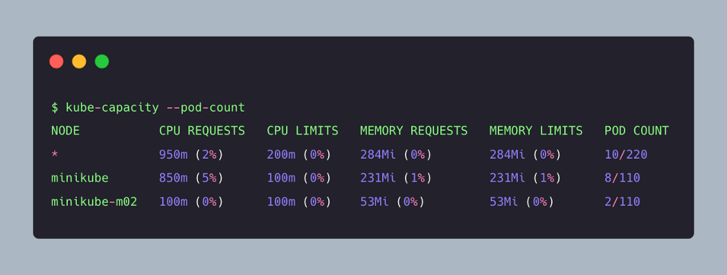 Kube-capacity 是一个简单而强大的 CLI,它提供了Kubernetes集群中资源请求、限制和利用率的概览。它将输出的最佳部分结合kubectl top到kubectl describe一个易于使用的集中于集群资源的 CLI 中。