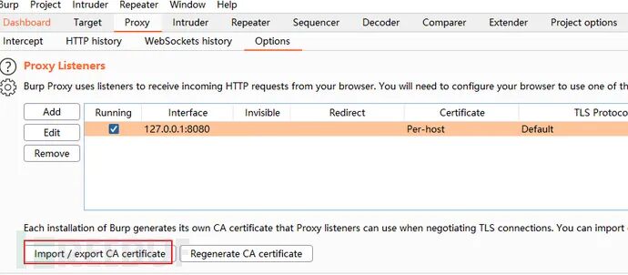 第一步先导出burp证书,其他抓包工具同理:然后将证书文件转换一下格式,这一步可以在kali下执行: