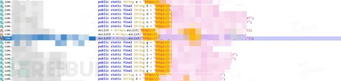 重新捋了一下思路后,发现还没有对apk包做过测试,所以就想着反编译看一下有没有什么东西。直接把包放到jadx中,没有加壳,随便搜索一下关键字,可以发现代码里面有不少域名,那么就把这些域名收集一下:
