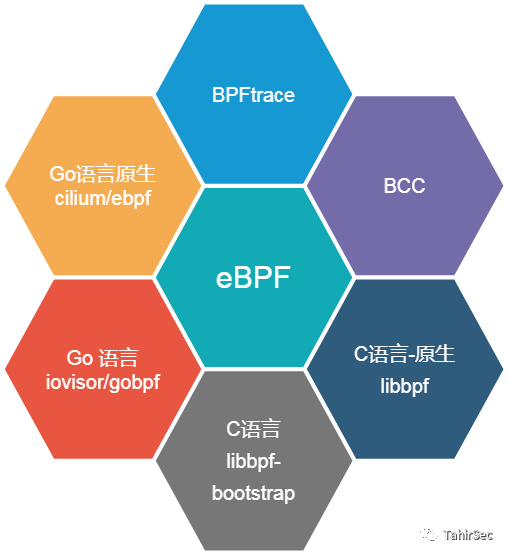 编写eBPF程序,通常通过Cilium、bcc或bpftrace等项目间接使用,这些项目提供eBPF抽象,不需要直接编写程序,而是使用预定义功能和帮助函数实现eBPF相关功能。相关框架利用bpf系统调用将eBPF程序加载到Linux内核中。