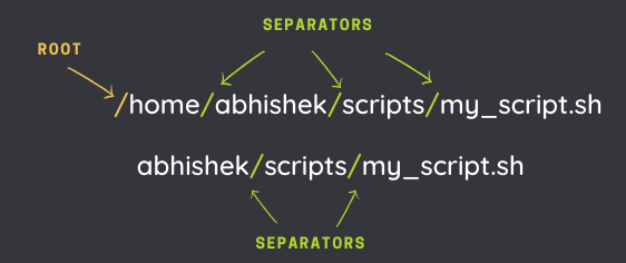 /home/abhishek/scripts作为一个系统用户,当您想要访问某个文件或目录,或者必须为命令或脚本指定文件或目录的位置时,就会使用路径。