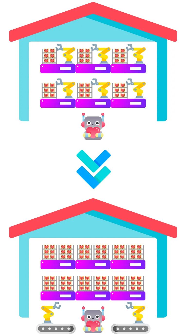 在2020年左右,ByteHouse 的各种小优化已经做到极致,拱不动了。Carl 他们咬咬牙——与其逃避命运,不如主动出击——决定对 ByteHouse 进行两场大手术。我们回到前面的比喻,把 ByteHouse 看做一个仓库。原本这个仓库是每一个货架(存储资源)旁边都站着一个固定机械臂(计算资源),需要这个货架上的数据,它就拿下来。但是可想而知,如果仓库规模不断变大,机械臂数量也会线性增多。然而,不是每个货架上的数据时刻都需要存取——大部分时间机械臂(计算资源)都在闲置中,资源浪费。所谓存算分离,就是把机械臂变成移动的,需要哪个货架上的数据,就过去拿。可想而知,这样的改造不仅能节省很多“机械臂”,还能腾出“货架”的空间。原本 ClickHouse 的任务分配模式是“树状”的:一个查询任务来了,就需要一个“工头”把任务分配给很多机械臂,它们把数据找来,再汇总给工头。可这样有个明显的缺点,就是工头一个人成为了系统的瓶颈,尤其是在数据汇总的时候,大家都把数据给它,它就会忙不过来。所谓“并行处理”,就是让机械臂们自己分别汇总,然后把汇总后的结果报给工头,就能大大缩短计算的时间。别看这两台手术从逻辑上听上去不难理解,但是要完成改造,需要深入数仓内部的最细节代码,相当于把每一颗螺丝都进行改造,再精巧地封装回去,难度直逼开颅手术——Carl 他们整整干了两年。就在 ByteHouse 做手术的时候,DataLeap 也没闲着。Brian 给我介绍了一个字节独创的理念,叫“数据的分布式自制”。举个例子,像抖音、今日头条这样的顶流业务,对数据的要求就是“变态级”的,哪怕数据晚到一秒钟,可能都是事故。可是对于字节内部刚刚孵化的小业务,就没必要这么较真,数据晚半个小时似乎也没问题。于是,DataLeap 就加入了一个功能,可以根据大家不同的容忍程度,自助调整数据链条的“松紧”。对数据要求严格,就必须在全链路的计算、存储、监控都下足本钱,成本自然就高;反之如果对数据时效要求不高,就可以坐慢车,大大节省成本。