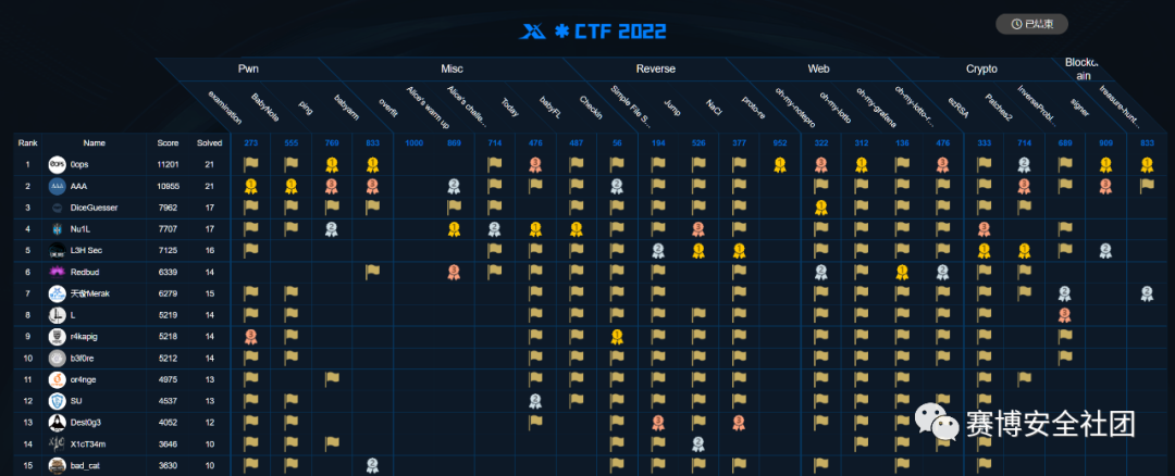 or4nge 的师傅们在第七届 XCTF 国际网络攻防联赛 *CTF2022 分站赛中奋战 48 小时,拿到了 11 名的好成绩,师傅们真棒!