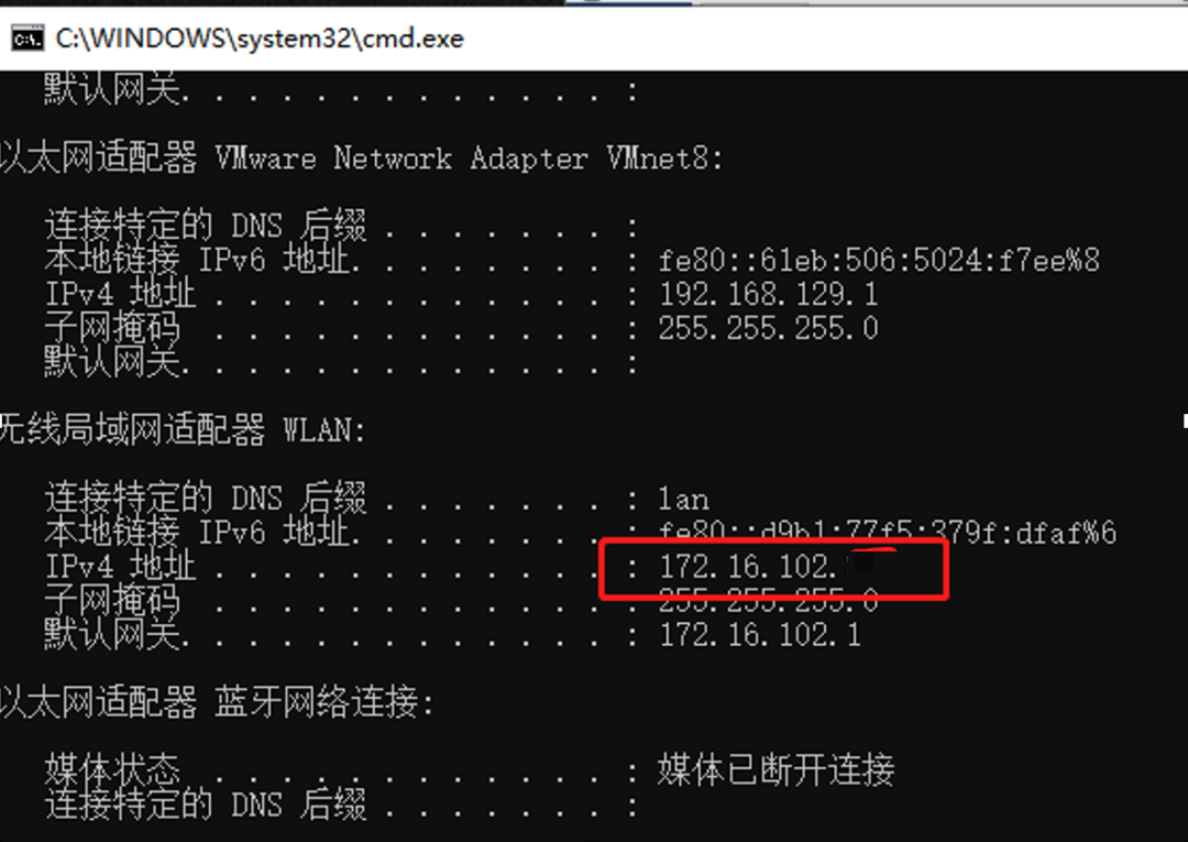 这边可以看到我的IP是172.16.102.xx,记下等会要用